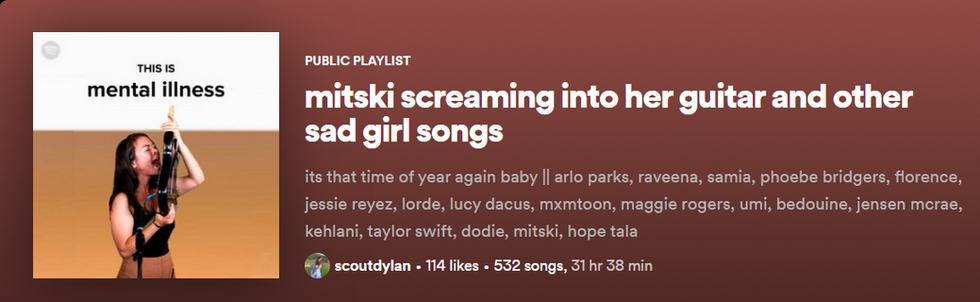 The fact that the first two songs in it as of now are by Mitski only goes on to prove the point further—the power of publicity and fandom spaces in shaping an artist’s image, sometimes even against the will of said artist.